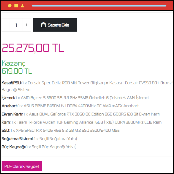 After customer changes any option, visitors can see amount of profit below actual price with green label.